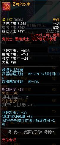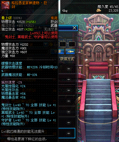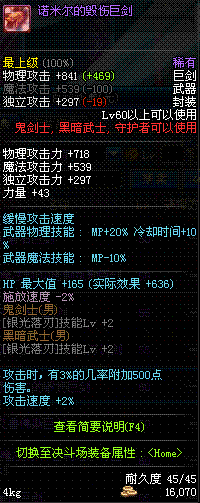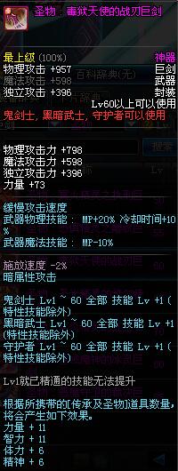 | 60 | 圣物 : 毒狱天使的战刃巨剑 | *Lv58~66普通地下城怪物掉落 |