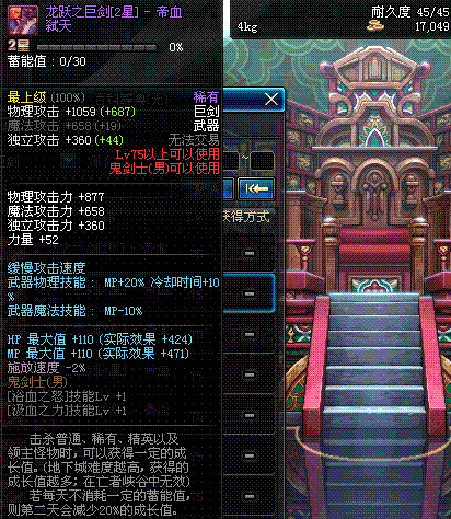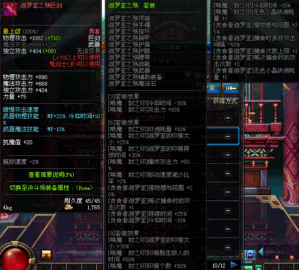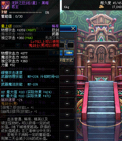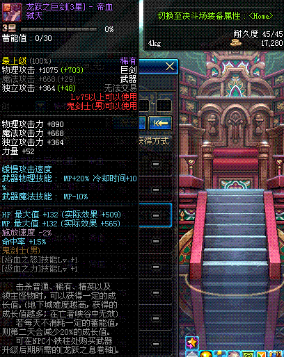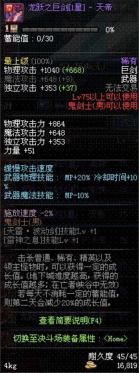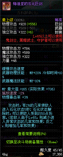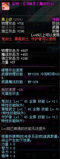 | 45 | 圣物 : 玄月精灵之雕纹巨剑 | *Lv45~51普通地下城怪物掉落 |