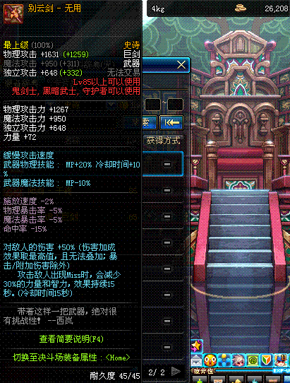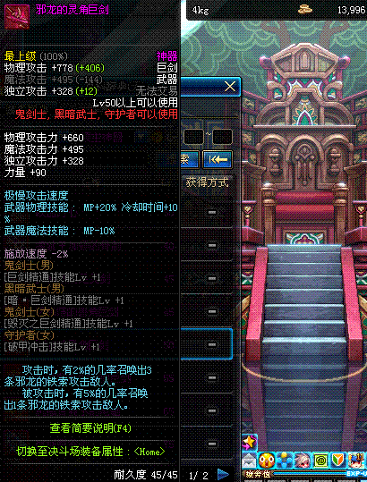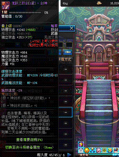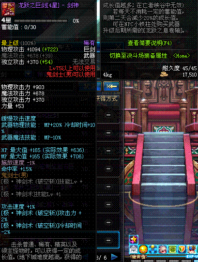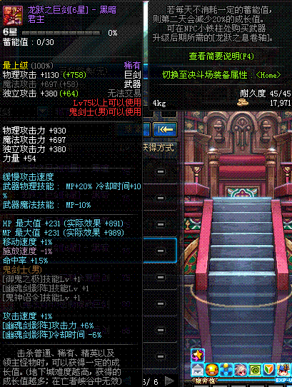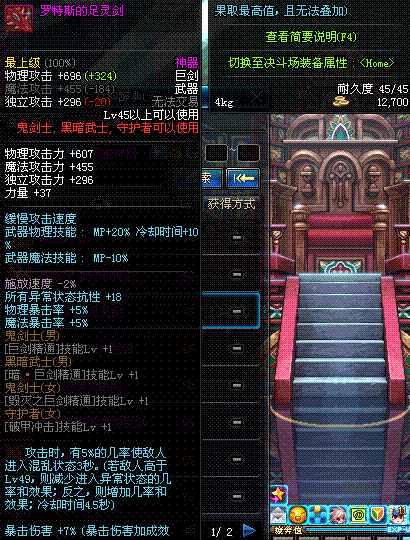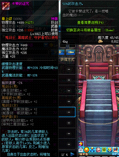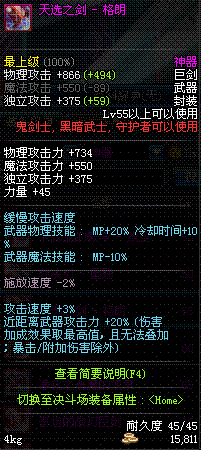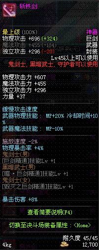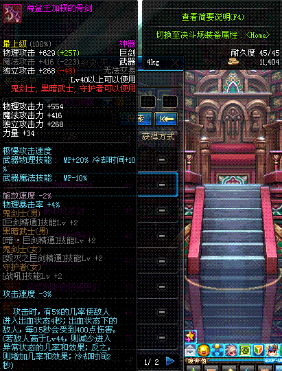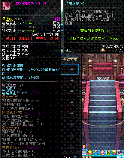 | 45 | 斩铁剑 | *Lv45~51普通地下城怪物掉落 *在加百利的神秘商店购买 |