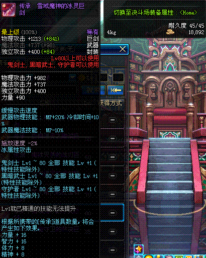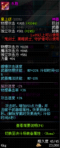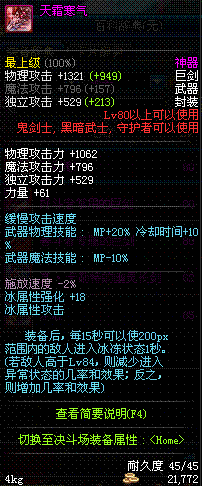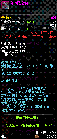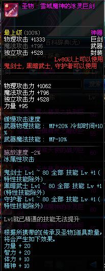 | 80 | 圣物 : 雪域魔神的冰灵巨剑 | *Lv80~86普通地下城怪物掉落 | ||