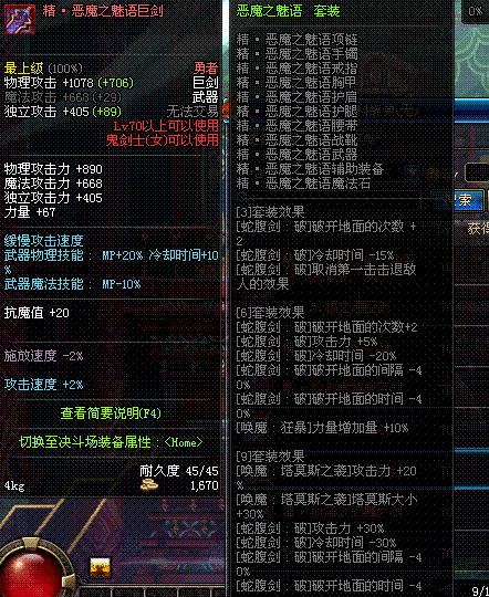 | 70 | 精·恶魔之魅语巨剑 | |||