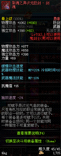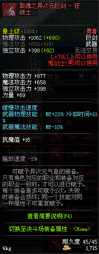 | 70 | 裂魂之异次元巨剑 – 剑魂 | *领主 掉落 (地下城:虚无之境, 黑色大地, 巴卡尔之城) | ||