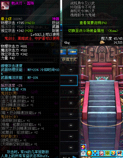 | 50 | 裁决刃 - 国殇 | *Lv50~56普通地下城怪物掉落 *在加百利的神秘商店购买 |
