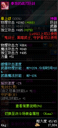| 65 | 泰坦的战刃巨剑 | *Lv65~71普通地下城怪物掉落 *在加百利的神秘商店购买 |
