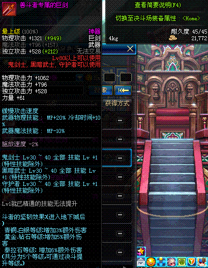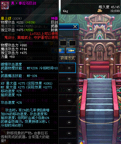 | 72 | 真·泰拉石巨剑 | * 设计图(70LV以上普通地下城 登场的NPC加百利 出售) *泰拉石巨剑 → 用远古神器装备进化书升级(NPC船长鲁特 出售) |