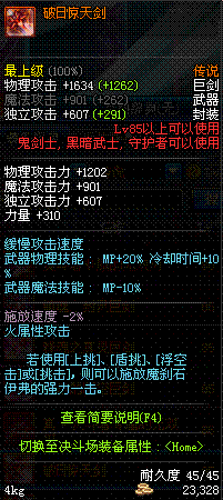| 85 | 破日惊天剑 | *魔刹石伊弗 掉落(地下城: 黑色火山 3图) *设计图(安徒恩普通地下城 登场的NPC加百利 出售) |