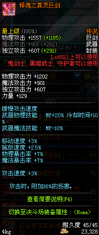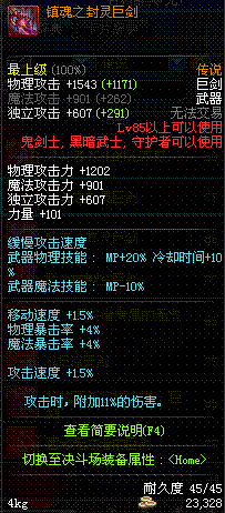 | 85 | 镇魂之封灵巨剑 | *时空之门地区 - 吟游诗人艾丽丝 出售 (镇魂之石×100) *购买镇魂武器礼盒(低级镇魂之石×140) |