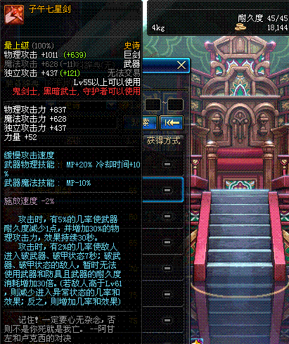 | 55 | 子午七星剑 | *Lv54~61深渊地下城怪物掉落 *在NPC沉默之克雷娅的物品店购买 |