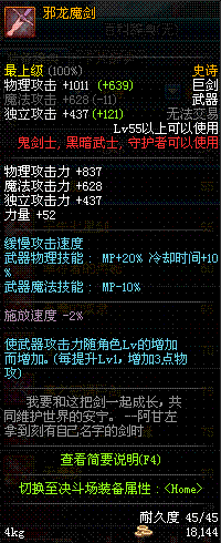 | 55 | 邪龙魔剑 | *Lv54~61深渊地下城怪物掉落 *在NPC沉默之克雷娅的物品店购买 |