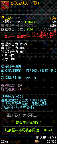 | 75 | 独孤玄铁剑 - 无锋 | *Lv74~81深渊地下城怪物掉落 *攻坚队完成安徒恩团队模式的[讨伐安徒恩]任务时,获得的奖励。 *深渊地下城(昔日悲鸣,克雷发电站) |