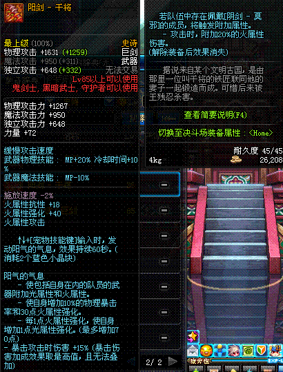 | 85 | 阳剑 - 干将 | *Lv84~91深渊地下城怪物掉落 *攻坚队完成安徒恩团队模式的[消灭安徒恩]任务时,获得的奖励。 |