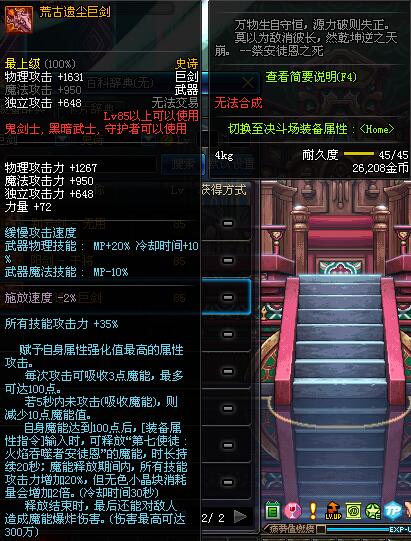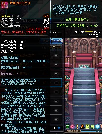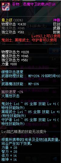 | 85 | 圣物 : 恶魔守卫的裁决巨剑 | *Lv85~91普通地下城怪物掉落 | ||