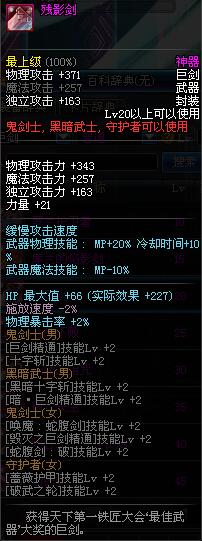 | 85 | 戮蛊的断空巨剑 | *虫王戮蛊 掉落(地下城: 魂:悲鸣洞穴 6图) *设计图(地下城 魂:悲鸣洞穴 登场的NPC加百利 出售) |