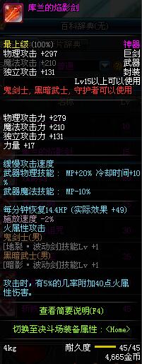 | 15 | 库兰的焰影剑 | *Lv13~21普通地下城怪物掉落 *在加百利的神秘商店购买 |