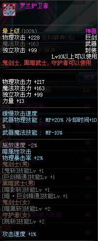 | 辅助装备: | 全职业 鬼剑士 女鬼剑 女格斗 男格斗 神枪手 女枪手 魔法师 男法师 圣职者 暗夜使者 守护者 |