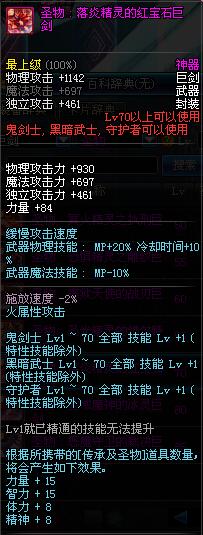 | 70 | 圣物 : 落炎精灵的红宝石巨剑 | *Lv70~76普通地下城怪物掉落 |