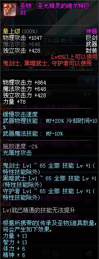 | 65 | 圣物 : 圣光精灵的维尔特巨剑 | *Lv65~71普通地下城怪物掉落 |