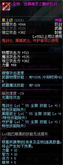 | 55 | 圣物 : 恐惧精灵之雕纹巨剑 | *Lv53~61普通地下城怪物掉落 |