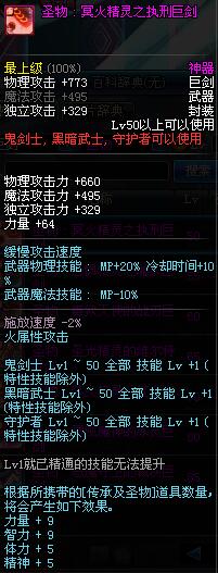 | 50 | 圣物 : 冥火精灵之执刑巨剑 | *Lv50~56普通地下城怪物掉落 |