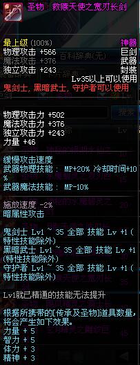 | 35 | 圣物 : 救赎天使之宽刃长剑 | *Lv34~41普通地下城怪物掉落 |