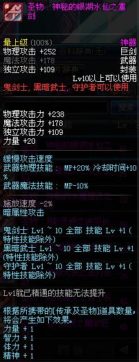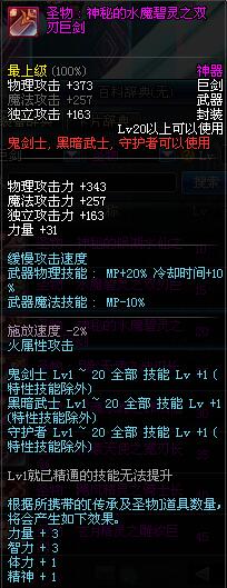 | 20 | 圣物 : 神秘的水魔碧灵之双人巨剑 | *Lv19~26普通地下城怪物掉落 | ||