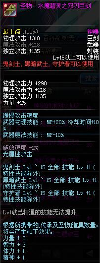 | 15 | 圣物 : 水魔碧灵之双人巨剑 | *Lv13~21普通地下城怪物掉落 |