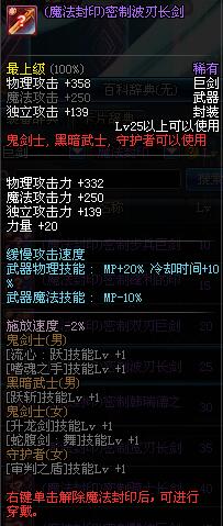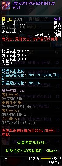 | 15 | (魔法封印)密制锋利的印度古剑 | *Lv13~21普通地下城怪物掉落 *完成[专职贺礼]任务 |
