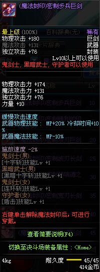| 10 | (魔法封印)密制步兵巨剑 | *Lv8~14普通地下城怪物掉落 | ||