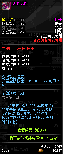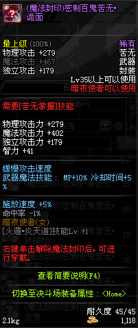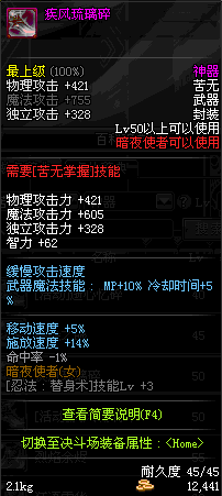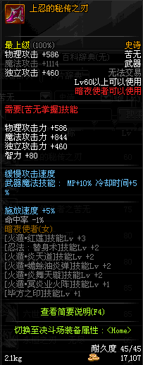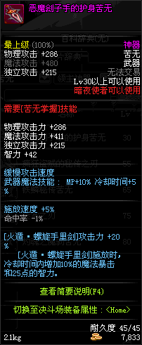 | 辅助装备: | 全职业 鬼剑士 女鬼剑 女格斗 男格斗 神枪手 女枪手 魔法师 男法师 圣职者 暗夜使者 守护者 |