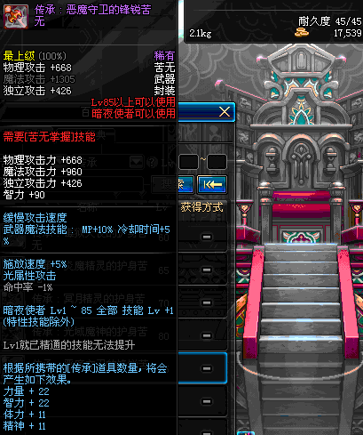 | 85 | 圣物 : 恶魔守卫的锋锐苦无 | *Lv85~91普通地下城怪物掉落 | ||