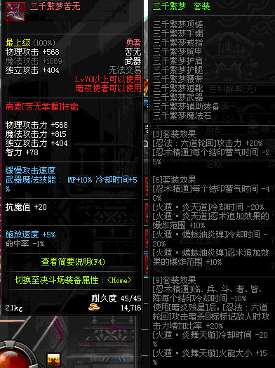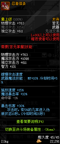 | 80 | 忍者信条 | *皮罗斯特暗杀团员 掉落(在能源中心地区的 深渊地下城里出没) | ||