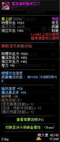 | 70 | 堕落者的秘传之刃 | *Lv70~76普通地下城怪物掉落 *在加百利的神秘商店购买 |