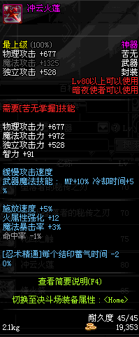 | 45 | 圣物 : 玄冰精灵的护身苦无 | *Lv45~51普通地下城怪物掉落 |