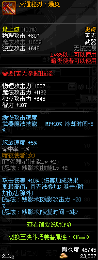 | 85 | 火遁秘刃 : 爆炎 | *Lv84~91深渊地下城怪物掉落 *攻坚队完成安徒恩团队模式的[消灭安徒恩]任务时,获得的奖励。 |