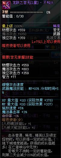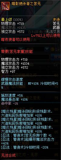 | 75 | 暗影绝杀者之苦无 | *Lv74~81深渊地下城怪物掉落 *攻坚队完成安徒恩团队模式的[讨伐安徒恩]任务时,获得的奖励。 |
