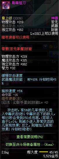 | 20 | 剧毒短刀 | *Lv19~26普通地下城怪物掉落 *在加百利的神秘商店购买 |