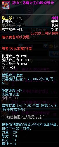 | 80 | 圣物 : 光域魔神的护身苦无 | *Lv80~86普通地下城怪物掉落 | ||