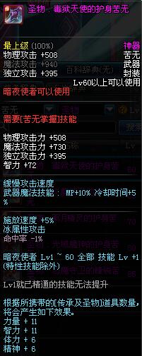 | 60 | 圣物 : 毒狱天使的护身苦无 | *Lv58~66普通地下城怪物掉落 |