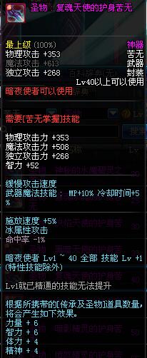 | 40 | 圣物 : 复魂天使的护身苦无 | *Lv39~46普通地下城怪物掉落 |