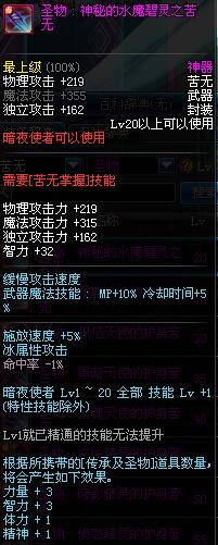 | 20 | 圣物 : 神秘的水魔碧灵之苦无 | *Lv19~26普通地下城怪物掉落 | ||