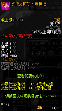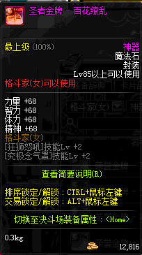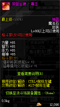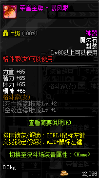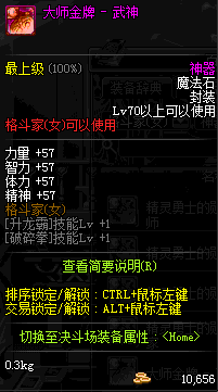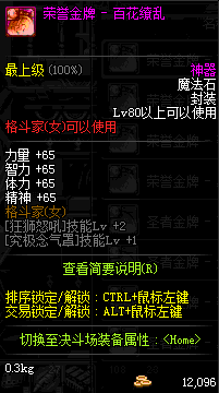 | 辅助装备: | 全职业 鬼剑士 女鬼剑 女格斗 男格斗 神枪手 女枪手 魔法师 男法师 圣职者 暗夜使者 守护者 |