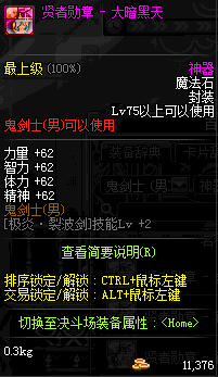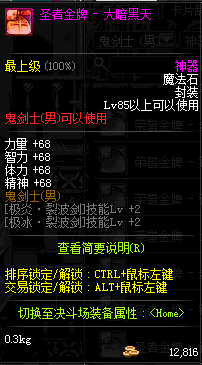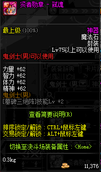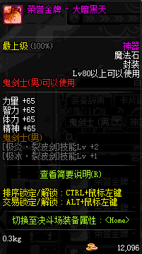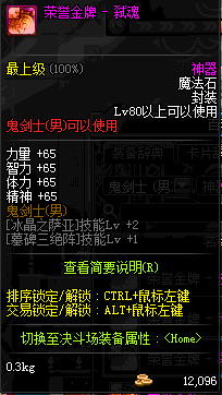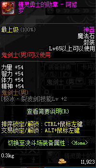 | 辅助装备: | 全职业 鬼剑士 女鬼剑 女格斗 男格斗 神枪手 女枪手 魔法师 男法师 圣职者 暗夜使者 守护者 |
