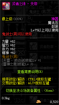| 神器 魔法石-鬼剑士(男) | ||||