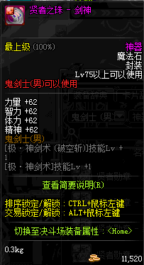 | 史诗 魔法石-鬼剑士(男) | ||||