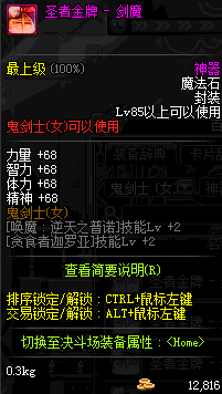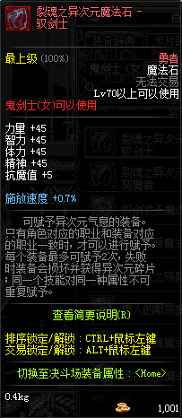 | 史诗 魔法石-鬼剑士(女) | ||||