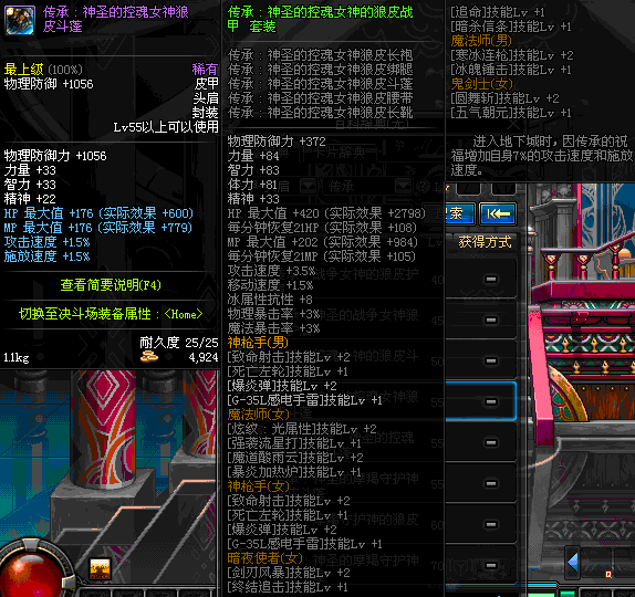 | 55 | 圣物 :控魂女神的狼皮斗篷 | *Lv53~61普通地下城怪物掉落 |