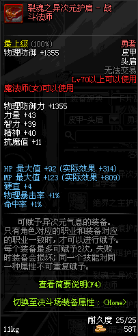 | 70 | 裂魂之异次元护肩 - 战斗法师 | |||