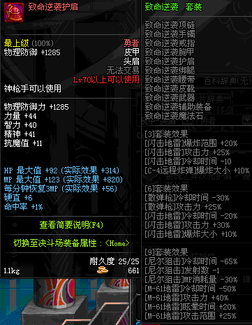 | 85 | 战术之王的御敌肩甲 | *Lv84~91深渊地下城怪物掉落 | 战术之王的御敌 套装 | |