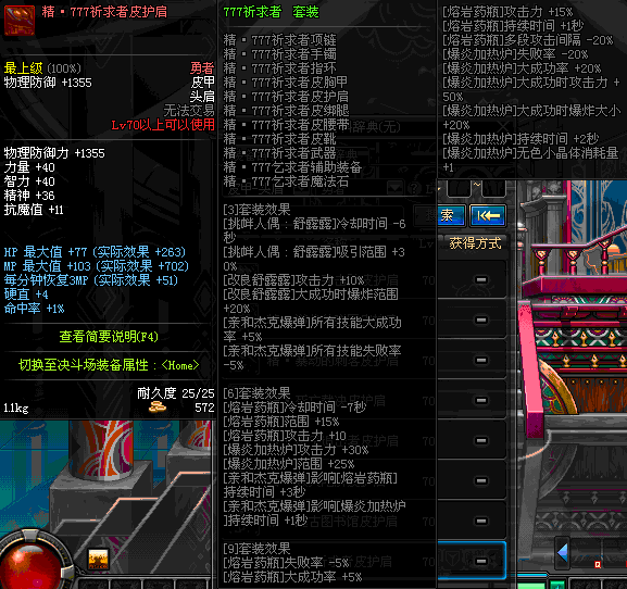 | 70 | 圣物 :荣耀的摩羯守护神的狼皮斗篷 | *Lv70~76普通地下城怪物掉落 |