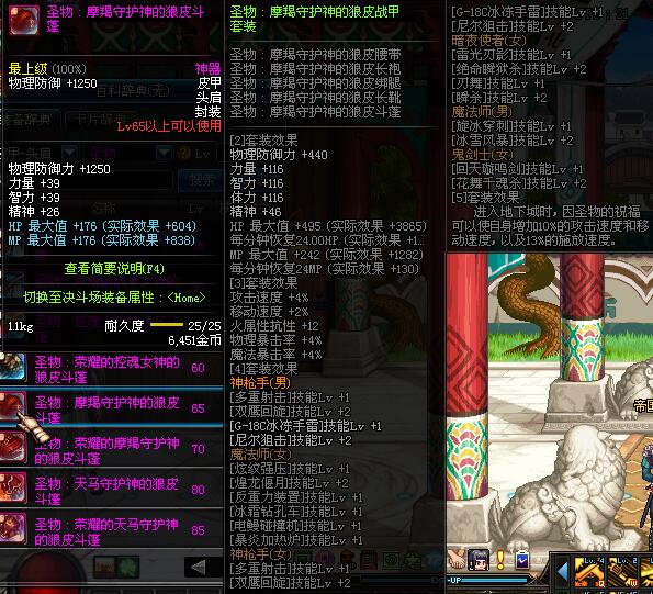 | 65 | 圣物 :摩羯守护神的狼皮斗篷 | *Lv65~71普通地下城怪物掉落 |